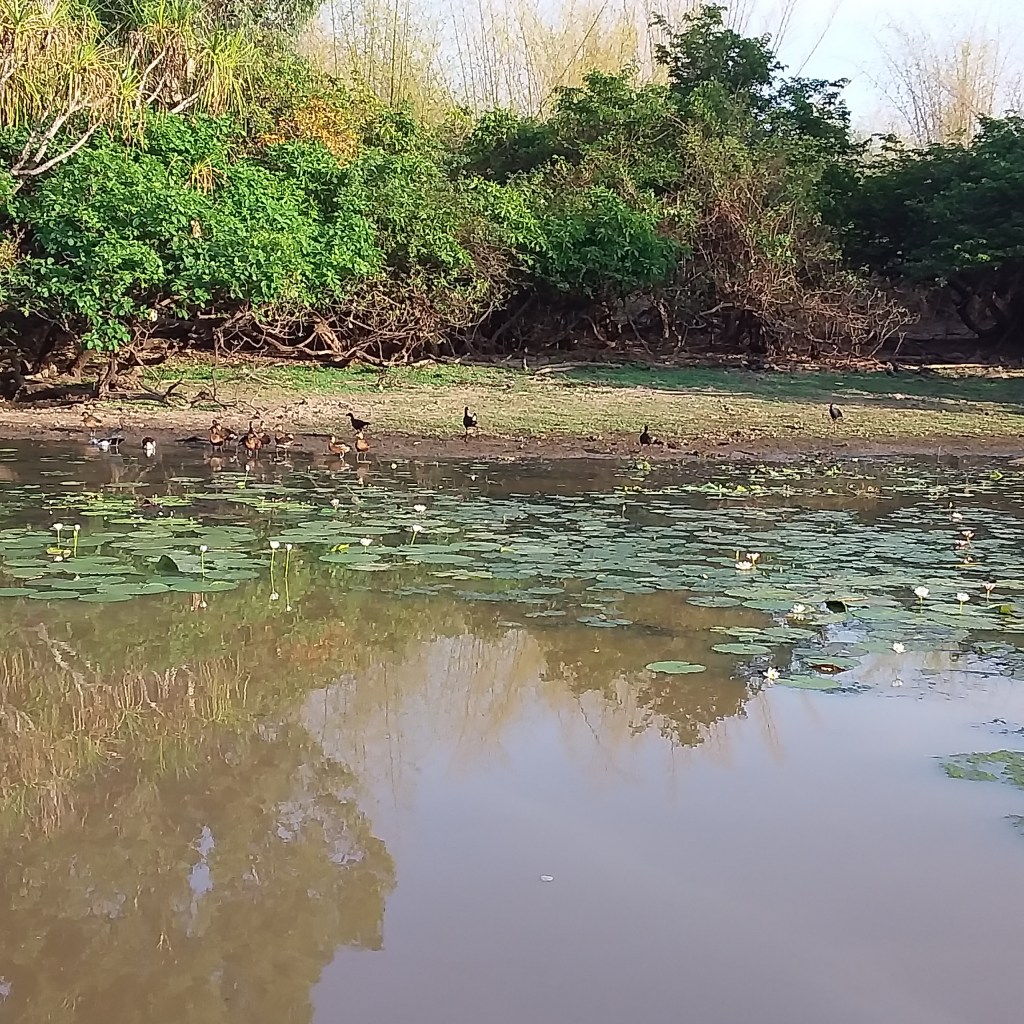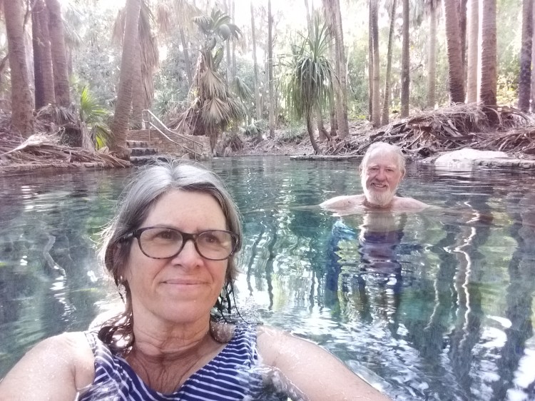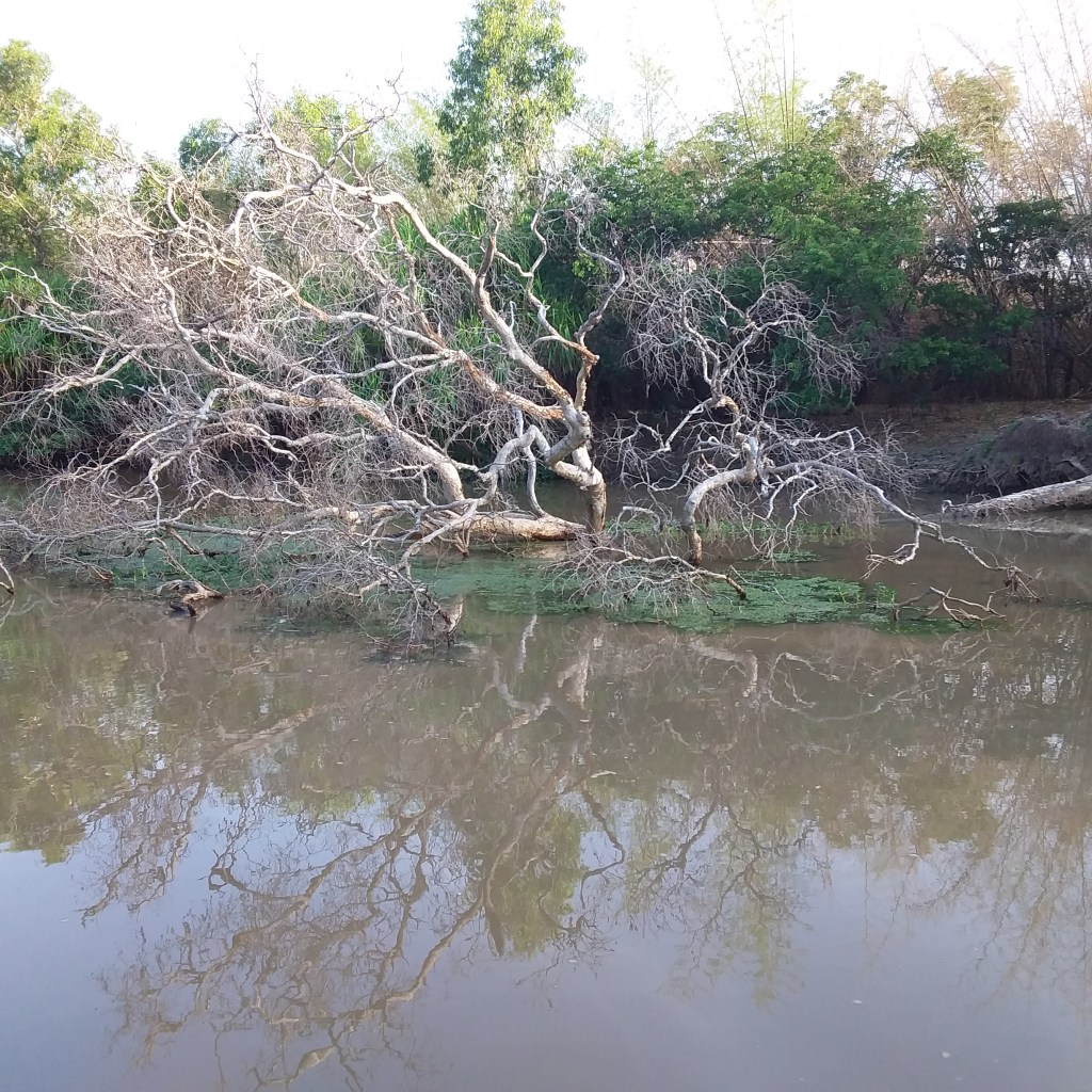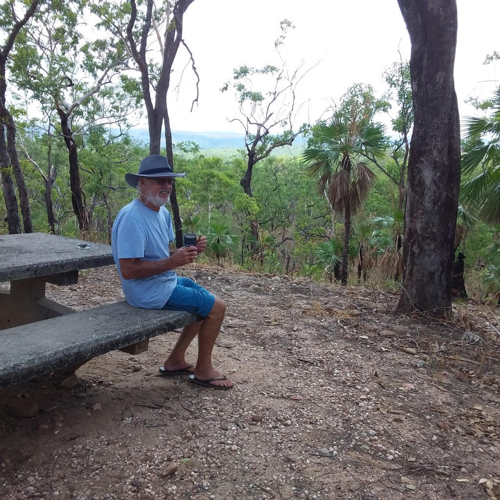 A mostly gravel road took us into King Ash Bay. With so few people travelling in the Northern Territory, we had our pick of camping spots. Once again we discovered it wasn’t easy to fish without a boat due to crocs, so we didn’t. What we did do was read, walk and go to the club for dinner. The club overlooked the river and it was such a warm evening. A lovely evening.