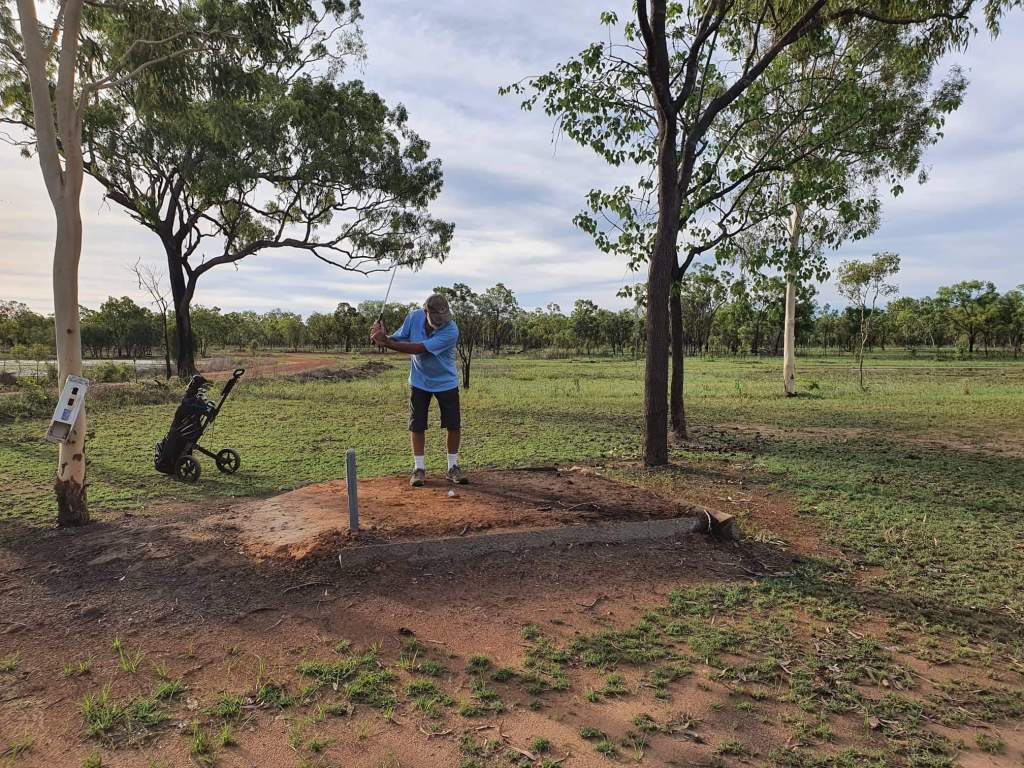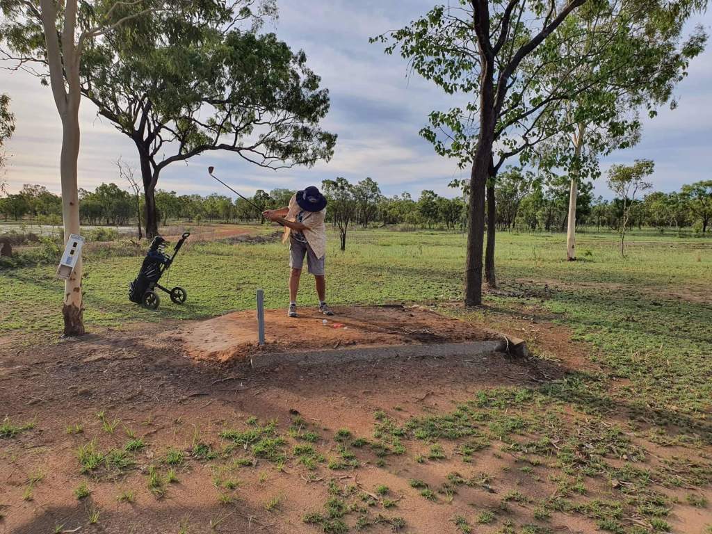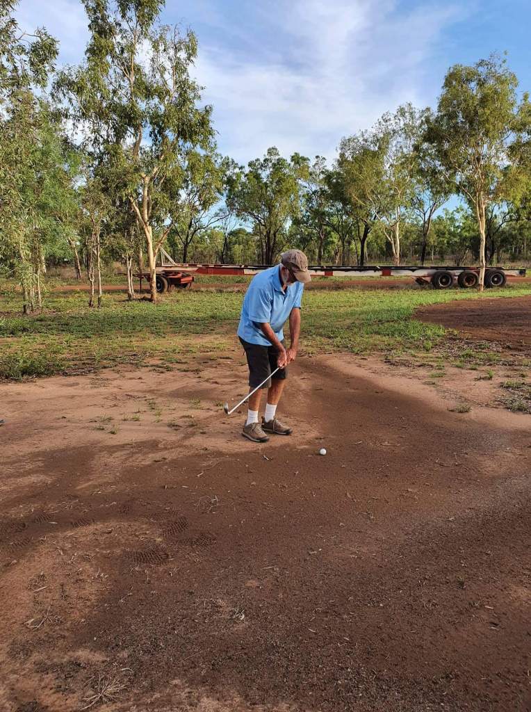 We met a lovely lady, Michelle, who stopped by our van as she was cycling passed. She told us a little bit about her history and what brought her to King Ash Bay. She lived alone at the park – which seems to be a lovely little community with a mix of permanent residents, regular and occasional visitors like ourselves. During the conversation, we mentioned that we had checked out the golf course. Michelle jumped at the chance to invite us for a game that afternoon. John eventually accepted the invitation.